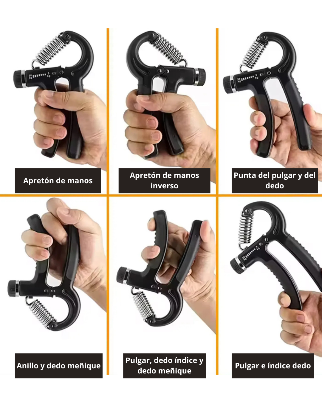 Simplemente ajusta la resistencia deseada y comienza a apretar. Para una rutina efectiva, aprieta el grip y mantén la posición por 5 segundos. Realiza 20 repeticiones por sesión para obtener los mejores resultados.