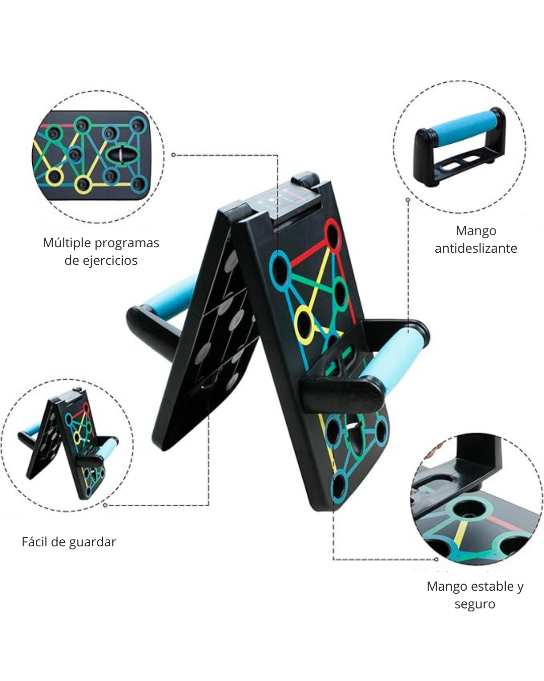 ¿Quieres esculpir un pecho, hombros, espalda y brazos fuertes y definidos sin salir de casa? Nuestra Tabla de Flexiones con Sistema de Orientación Muscular es la herramienta de entrenamiento definitiva que estabas buscando. Este innovador equipo transforma las flexiones tradicionales en un entrenamiento completo y científicamente diseñado para maximizar tus resultados.